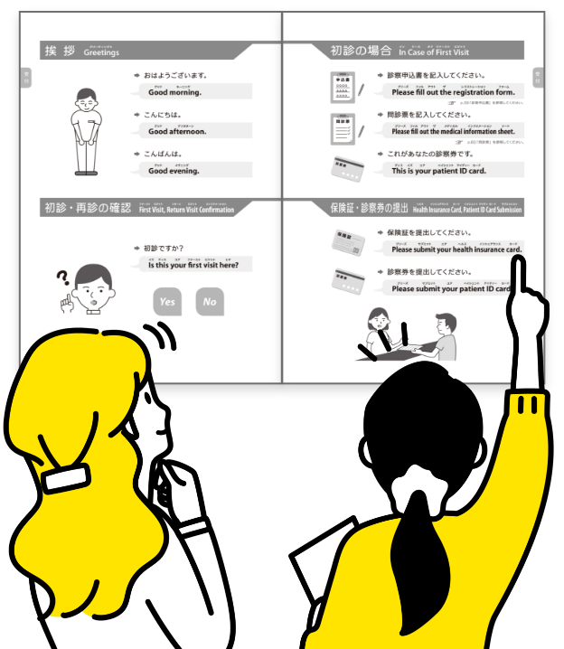 “指さすだけ”でも対応できるので、突然外国人患者様が来院された場合も安心です。
