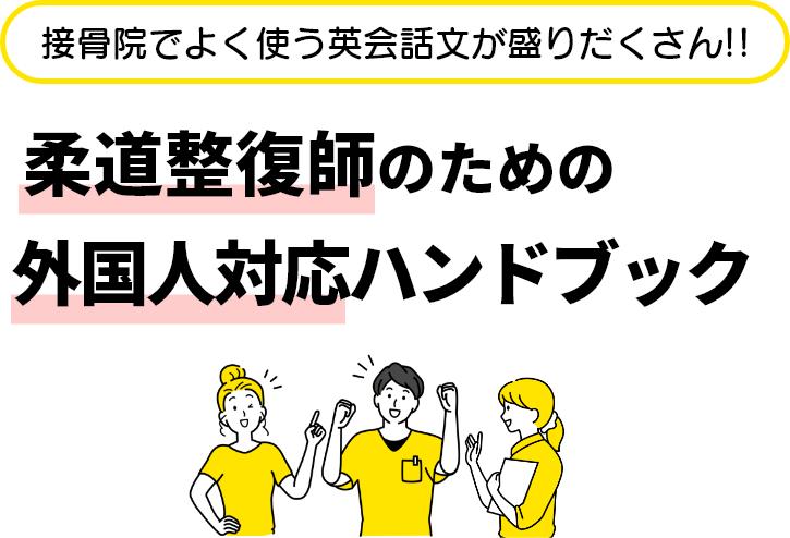 - 柔道整復師と外国人患者様のコミュニケーションを促進するための本です。施術所でのさまざまな状況を想定した会話例を、日本語・英語で掲載しています。